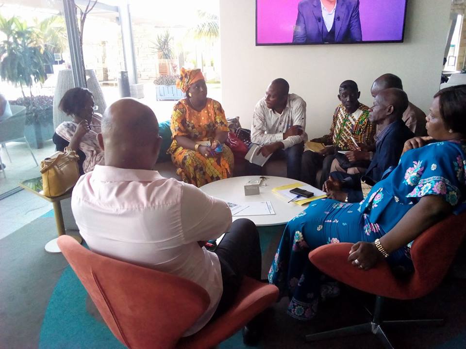 A l’occasion de la visite de la secrétaire régionale de l’organisation internationale Industrie ALL Global Union , une rencontre s’est déroulée ce Lundi 08 Octobre 2018 dans un hôtel de la place, entre les membres du bureau du Syndicat National des Mines, Energies ,industries et carrières (SYNAMIC) ,du secrétaire général adjoint de l’organisation Nationale du Syndicat libre de Guinée (l’ONSLG) et madame Paule France Ndessomin, Secrétaire régionale de l’organisation Internationale Industri ALL Global Union. Objectif ? Procéder à des échanges d’informations par rapport aux activités Syndicales en guinée.