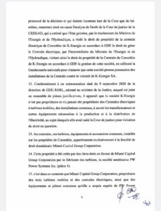 Dans l’arrêt rendu, l’instance reconnaissait l’Etat guinéen coupable de violation des droits de propriété de K-Energie en privant l’entreprise de l’usage de ses actifs.