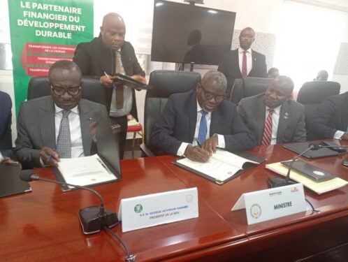 Ce Lundi 10 Novembre 2025 à Conakry,le Ministre de l’Économie et des Finances ,Mourana Soumah, a procédé à la signature de deux accords de financement avec la Banque d’Investissement et de Développement de la CEDEAO (BIDC).Cette cérémonie de signature qui s’est déroulée dans les locaux du ministère de l’Economie et des finances, a connu la présence du ministre de de la Coopération International et du Plan, Ismaël Nabé,