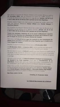 Détenus depuis déjà plusieurs mois, selon le contenu des documents dont des copies ont été transmis à la rédaction de notre quotidien en ligne, le collectif des avocats de Oumar Sylla dit Alias Foniké Menguè, Ibrahima Diallo et Sékou Yaya Barry, vient de faire une déclaration sur la procédure judiciaire de leurs clients.