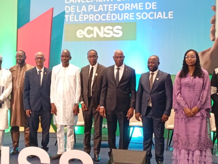 Pour redynamiser les services de la Caisse Nationale de Sécurité Sociale à travers la digitalisation, l’institution en charge de la protection sociale, a procédé ce mercredi,09 juillet 2025,dans un réceptif hôtelier de la place, au lancement officiel de la plateforme numérique dénommée » téléprocédure sociale eCNSS ».Cette cérémonie de lancement a été présidé par le Premier ministre Chef du Gouvernement,Ahmadou Oury Bah,en présence de plusieurs autres personnalités notamment,le ministre de la fonction publique, Faya François Bourouno , la ministre des postes et Télécommunications,Rose Pola Pricemou, du ministre de la santé et de l’hygiène publique,Dr Diouhé Bah Général Aminata Diallo, directrice générale de la Caisse Nationale de prévoyance Sociale et porte parole du CNRD , du Directeur Général de la Caisse Nationale de Sécurité Sociale, Bakary Sylla,des directeurs des Banques de la place,des directeurs des entreprises nationales et étrangères,des travailleurs de la CNSS,ainsi que d’autres invités de marque