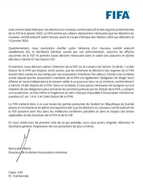 Dans le courrier, la FIFA a estimé par ailleurs absolument nécessaire que les élections du nouveau comité exécutif soient tenues avant la Coupe d’Afrique des Nations 2024 qui débutera le 13 janvier 2024.