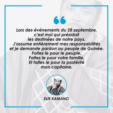 « Lors des événements du 28 septembre, c’est moi qui présidais les destinées de notre pays. J’assume entièrement mes responsabilités et je demande pardon au peuple de Guinée », propose le général Élie au plus célèbre prisonnier guinéen. Avant d’ajouter : « faites-le pour le peuple, faites-le pour votre famille et faites-le pour la postérité, mon capitaine »