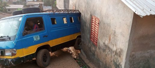Dans son explication, Karifa Zoumanigui a expliqué qu’il était couché au salon en regardant la télé avec deux de ses enfants quand soudainement ce minibus Bambanyi a percuté sa maison.