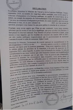 À travers une déclaration lue en présence des médias, ces candidats en colère ont sollicité l’implication du gouvernement et du Chef de l’Etat, colonel Mamadi Doumbouya afin de trouver une solution définitive à leur problème.