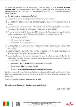 Cinq (5) jours après l’interruption de la vente de l’essence suite l’incendie du dépôt du dépôt d’hydrocarbures de Kaloum, le gouvernement a finalement autorisé la vente de l’essence et gasoil sur toute l’étendue du territoire national à compter de demain samedi 23 décembre 2023.