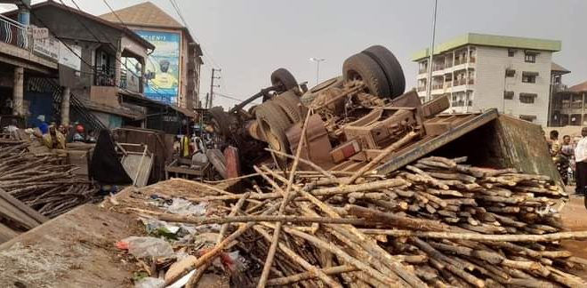 Selon les informations, c’est un camion rempli de bois qui aurais perdu son système de freinage sur la colline de la Cimenterie pour terminer course à quelques metres du grand marché de Lansanaya Barrage.