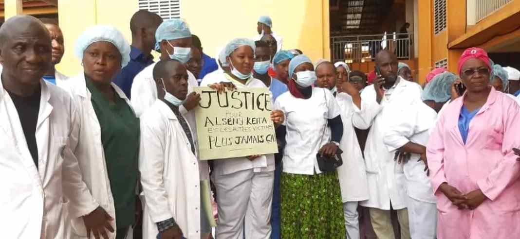 « Justice pour Alseny Keita. Plus jamais ça », c’est avec ces slogans que les médecins de l’hôpital régional de Conakry se sont mobilisés ce lundi devant le service des urgences au sein duquel la victime travaillait.