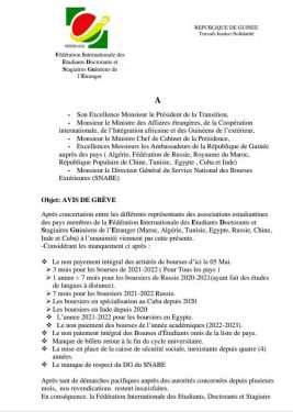 La fédération internationale des étudiants doctorants et stagiaires guinéens de l’étranger, décide de passer à la vitesse supérieure pour réclamer le paiement de leurs bourses.