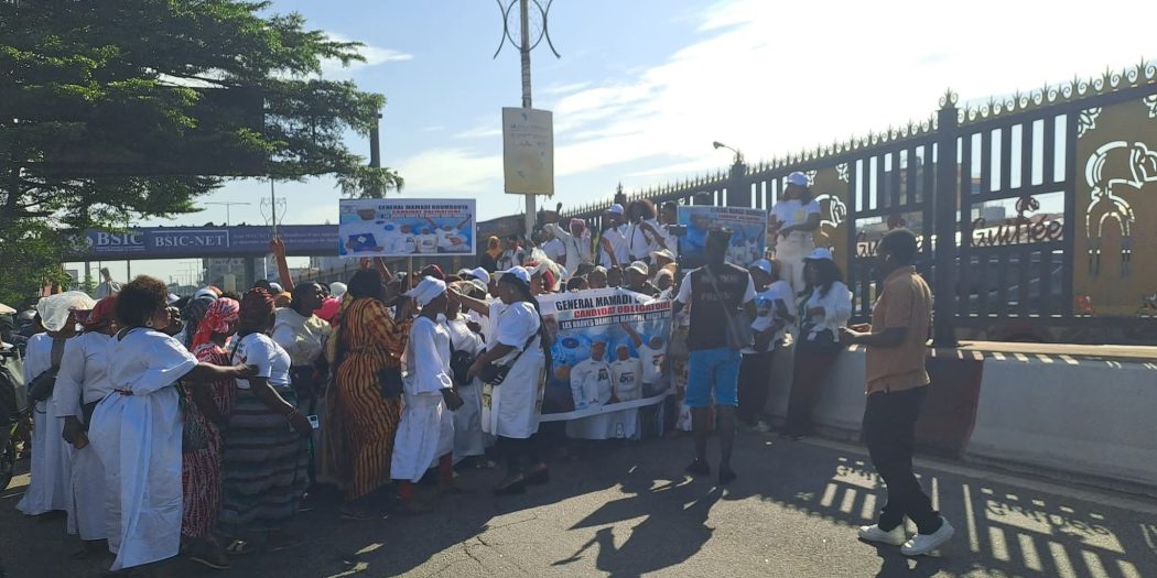 Ces femmes vêtues en boubou blanc, avec des pancartes en main, ont perturbé la circulation pour exprimer leur souhait concernant le Président de la transition, le Général Mamadi Doumbvouya.