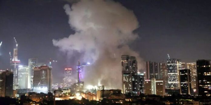 Les alarmes incendies. Les alarmes de voitures. Leurs feux qui clignotent. Des débris, des branches, du verre au sol. La fumée. Les gyrophares de la police, des secours. Les soldats déployés autour de la Kirya, principale base de l’armée israélienne à Tel-Aviv, qui abrite le siège du ministère de la Défense. Le quartier est bouclé. Difficile de dire si le site militaire interdit d’accès a été atteint.