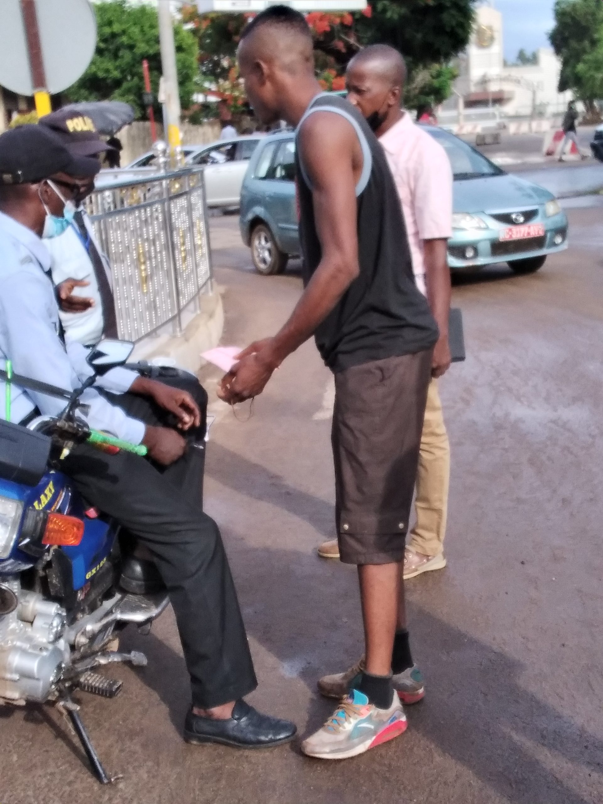 Cette photo est illustration parfaite de cette anarque, ce matin en face du palais Sèkhoutouréyah, dont ces citoyens se font subtiliser par ces deux policiers qui déshonorent la corporation de la police en Guinée. Général Ansoumane Baffoé Camara a toujours demandé des preuves pour servir contre ces policiers indélicats, il en a une à sa disposition.